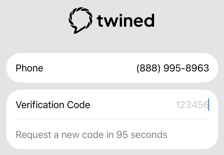 Do not share your code with anyone. Our support will never ask for your verification code. We do not accept text message replies, but we're happy to help by emailing support@twined.ai or messaging us within the app.